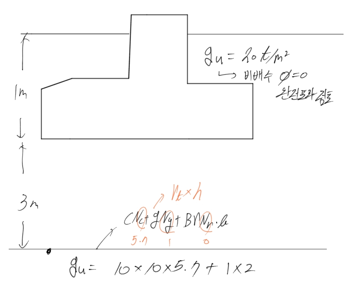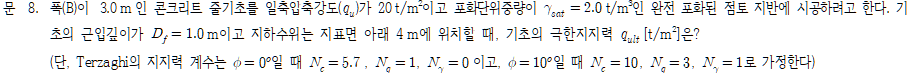 완전 포화된 점토는 마찰각이 0이라는 것만 알면 게임 끝났다 솔직히 30초안에 풀만하다.