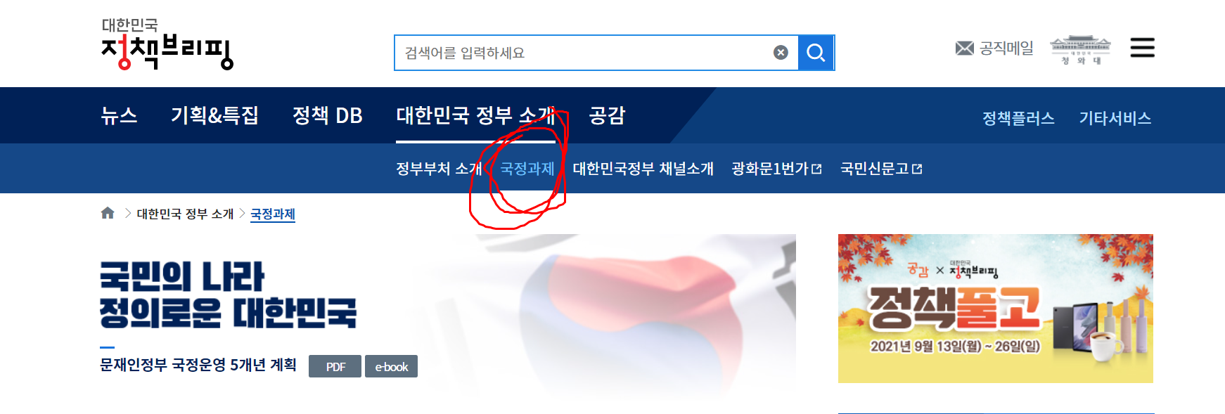 우리 대한민국 공무원의 국정과제를 살펴보자.