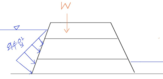흙댐은 착공부터 와나공까지 계속 흙을 쌓아올리기 때문에 중량의 상승으로 간극수압이 상승한다.