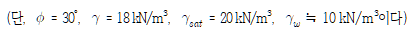 사질토의경우는 점착력이 없으므로 C = 0이다