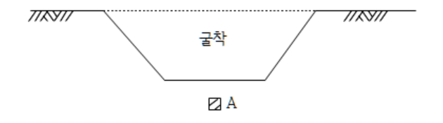 문 3. 그림과 같은 굴착현장에서 굴착면 하부지반 A의 거동을 평가하고자 한다. 이 때 현장상태를 가장 잘 반영할 수 있는 실내시험방법은?
