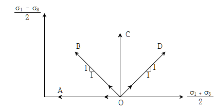 ① OA 경로에서 σ1, σ3 각각의 응력변화량의 절대값은 같다.