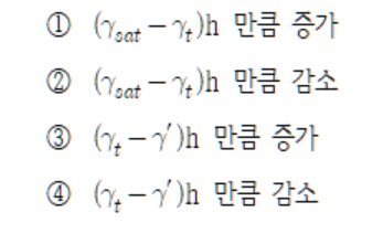 γsat는 포화단위중량, γt는 습윤단위중량, γ'은 수중단위중량,γw는 물의 단위중량이다.)