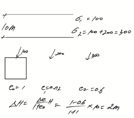 이 점토지반의 초기 평균 유효연직응력이 100kN/m²인 상황에서 지표면에 200kN/m²의 등분포하중이 충분히 넓게 재하되었다면, 점토지반에 발생하는 최종 압밀침하량[m]은?