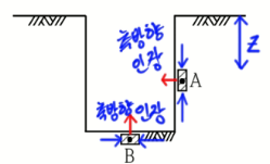 A는 옆에 흙이 없어서 측방향으로 인장이 된다.