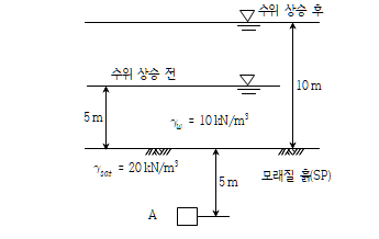 지표면 안에서 수위변화가 없다면 유효응력 변화는 없다