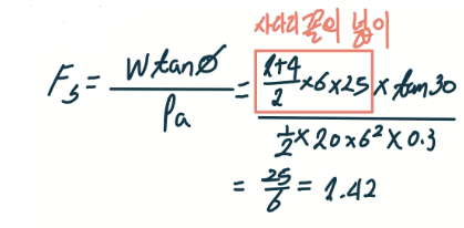 문 18. 그림과 같이 유한사면 위에 연속구조물이 위치하는 경우 사면의 안전율은?