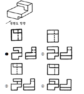 다음 입체도를 제3각법으로 나타낸 3면도 중 옳게 투상한 것은?