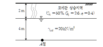 난이도 중상, 모세관 상승구간에서는 유효응력이 증가하는지 감소하는지 이해를 하고 가야한다.