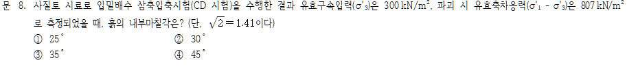 난이도 중 , 자주나오는 문제이고 토질역학 전공을 배울때도 강조하는 부분이다.