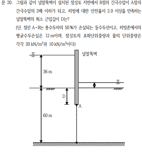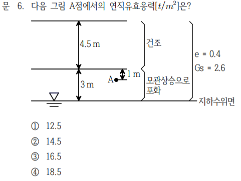 유효응력만 알고 있으면 풀리는 문제는 아주쉬운 문제이고 모관현상이 발생할 때 유효응력을 구하는 것은 모관현상에 대해 정확하게 알고있어야 쉽게 풀 수 있으므로 명확하게 이해하고 가야한다. 따라서 기출문제 뿐만아니라 전공서의 문제도 필수로 참고해야한다. 또한 모관현상과 관련된 동해, 동상에 관련된 내용도 같이 연계될 수 있다.