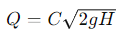 는 유량,는 오리피스의 계수,는 중력가속도,는 수두입니다.