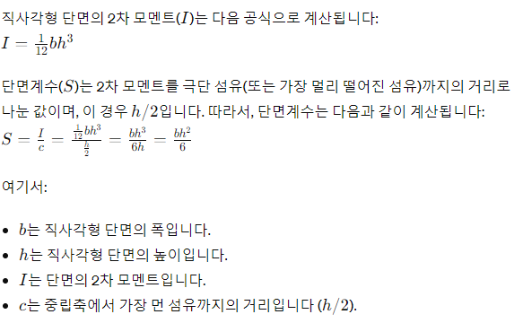 단면의 저항 능력을 나타내는 값으로, 휨 응력을 계산할 때 사용