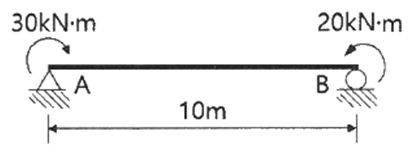 모멘트의 평형: A 지점에 대한 모멘트 평형을 취하면, B 지점에서의 반력이 생성하는 모멘트와 B 지점에 작용하는 반시계 방향 모멘트의 합은 A 지점에 작용하는 시계 방향 모멘트와 같아야 합니다.