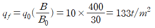 1. 모래지반에 30cm× 30cm의 재하판으로 재하실험을 한 결과 10t/m²의 극한 지지력을 얻었다. 4m× 4m의 기초를 설치할때 기대되는 극한지지력은?