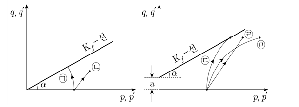 ④ ㉤은 과압밀점토의 정(+)의 과잉간극수압이 발생하는 유효응력경로이다.