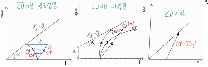 CU시험 ① 제방, 흙댐 수위 급강하 시 ② Pre loading 후 수 급격한 재하 시 ③ 성토하중에 의해 급파괴 시 |