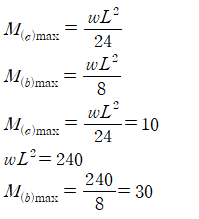 3. 그림과 같이 동일한 크기의 등분포하중 w를 받고 있는 두 개의 탄성보가 있다. 탄성보(a)의 최대 정모멘트의 크기가 10kNㆍm이면, 탄성보(b)의 최대 정모멘트의 크기[kNㆍm]는? (단, 두 보의 자중은 무시하며, 휨강성 EI는 일정하다)