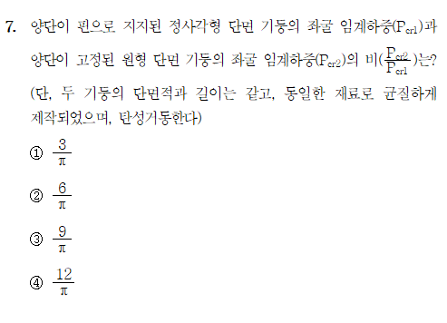 난이도 하, 두 기둥의 좌굴 임계하중의 비율