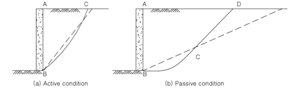 ③ Rankine토압의 경우 벽면과 지반사이의 마찰을 고려하지 않아서 주동토압은 과대평가가 되고 수동토압은 과소평가가 된다.