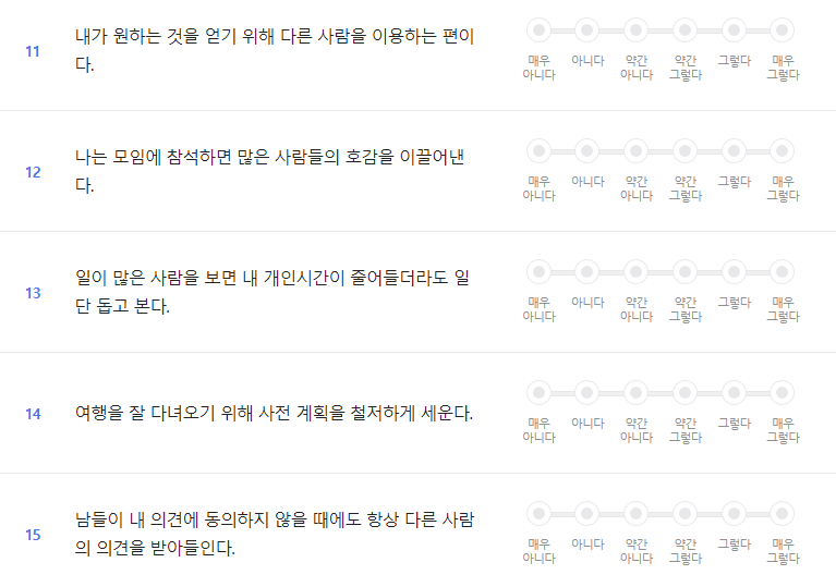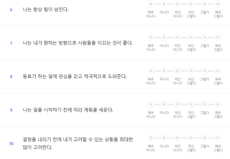 고독, 활발, 창의적, 역동적 이런 방향을 정하고 인성검사에 응해라