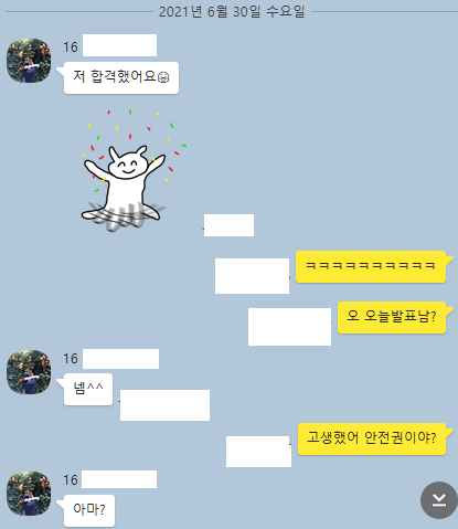 내가 기르던 공시생 후배가 필합했다는 소식을 들려줬거든요