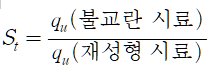 교란후 함수비로 재성형된 시료의 전단강도보다 크다.