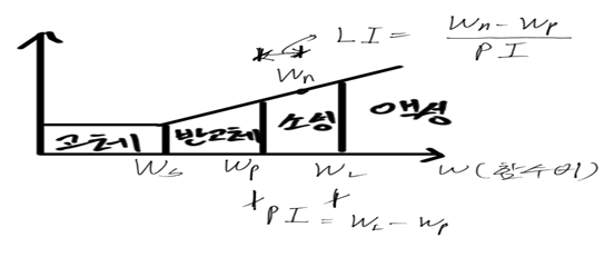 소성지수(PI) = 액성한계(WL-Wp) 로 정의됨