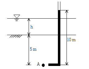 문 15. 그림과 같은 사질토층의 A점에서 상향흐름이 있을 경우, 분사현상이 발생하지 않기 위한 최저수심(h)[m]은?