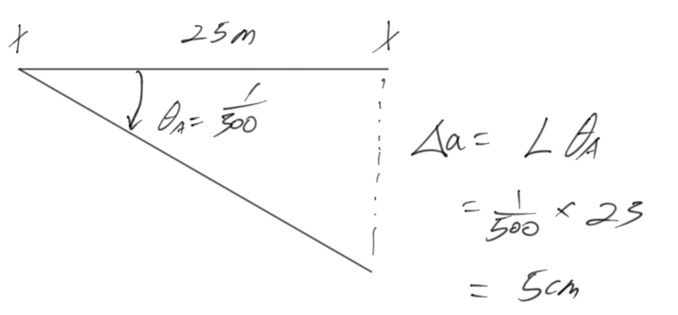 문 16. 길이가 25m인 정방형 전면기초인 건물이 있다. 이 건물의 허용 각변위(angular distortion)를 1/500이라고 할 때, 최대허용부등침하량[cm]은?